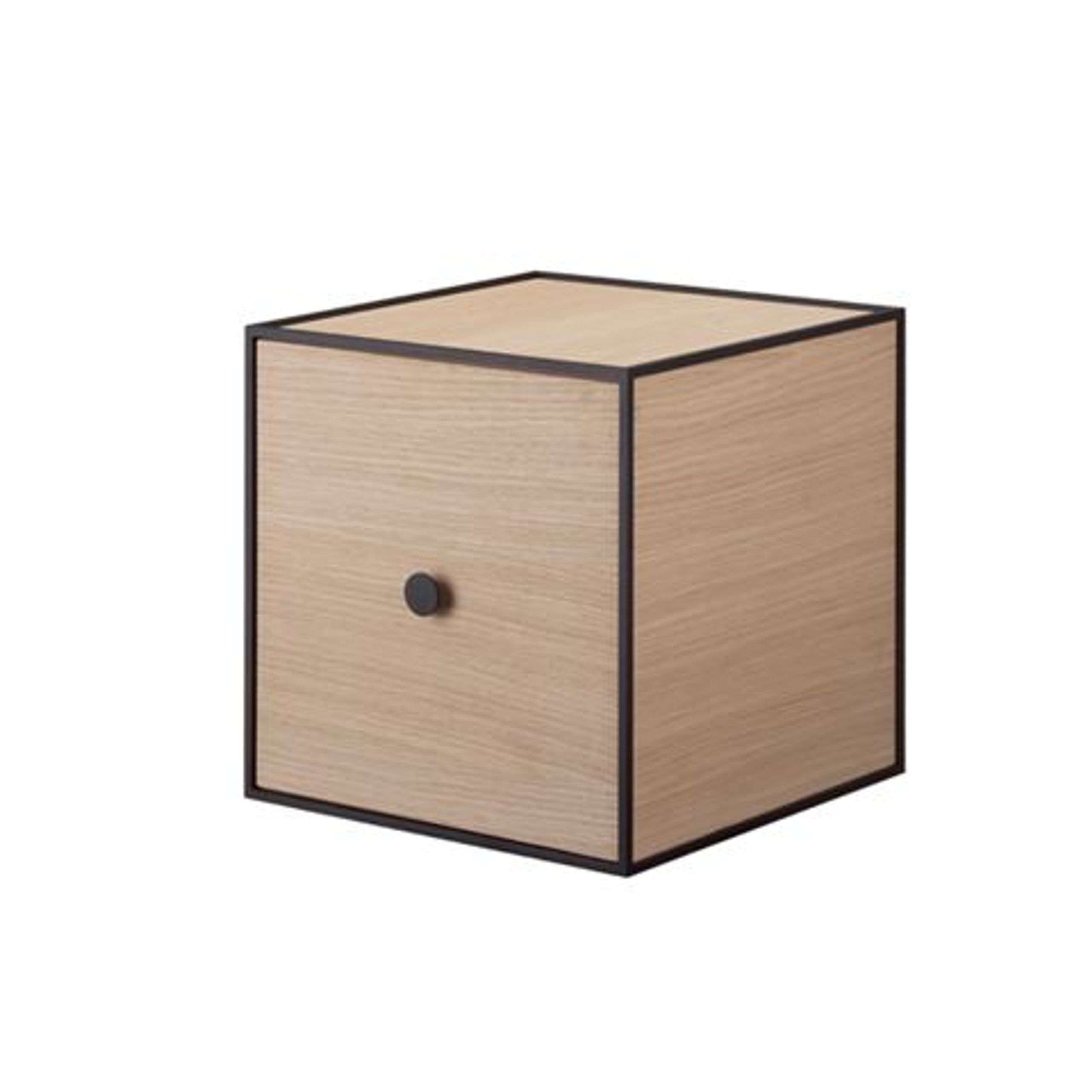 Frame er en alsidig opbevaringsserie, der samler kvadratiske bokse i et stramt, kubistisk design. De kan elegant hænges op på væggen, stables i kreative formationer eller placeres fritstående på gulvet, hvilket åbner op for utallige muligheder for personlig indretning. Låget kan enten fjernes helt eller fungere som en praktisk låge, så du frit kan forme både funktion og æstetik.