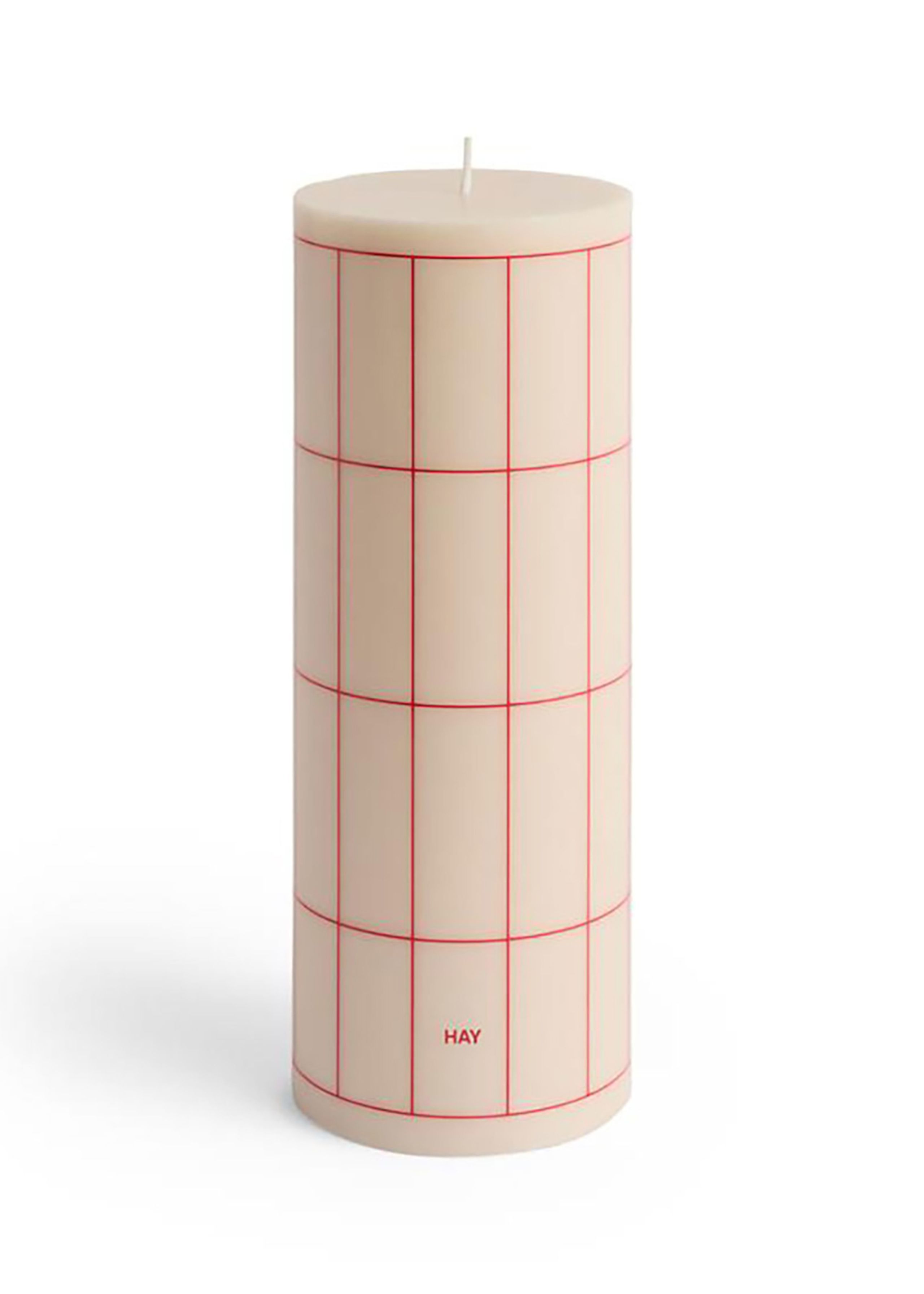 HAY - Bloklys - Column Candle - Off-White | Red | Grid Check