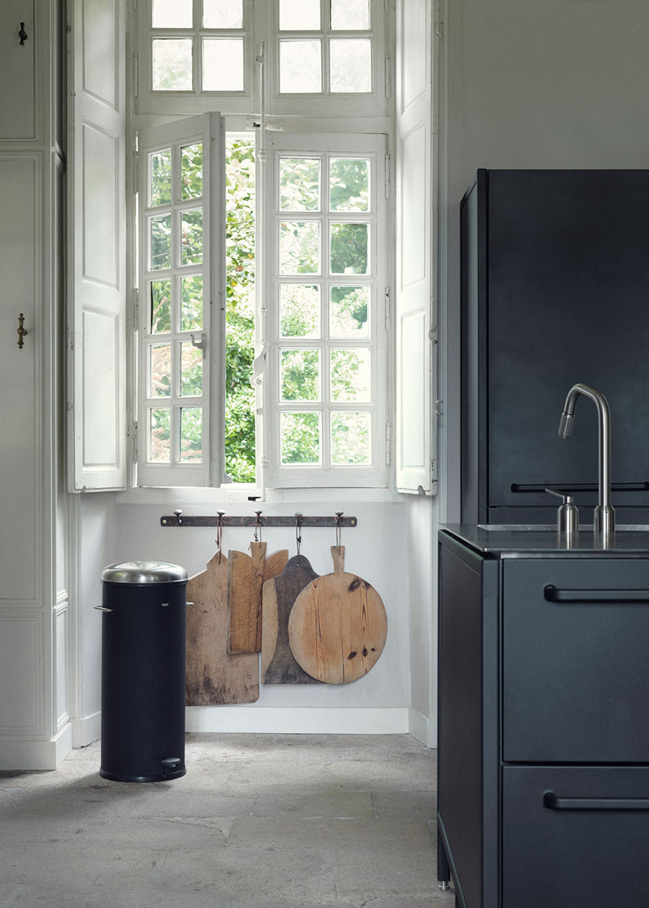 Vipp15 er designet med en kompakt størrelse, som passer perfekt til køkkenet, og de små greb giver fleksibilitet til nemt at flytte spanden efter behov. Kombinationen af pulverlakeret stål og rustfrit stål gør produktet modstandsdygtigt overfor hverdagens slid, samtidig med at det bevarer sit stilrene udtryk.