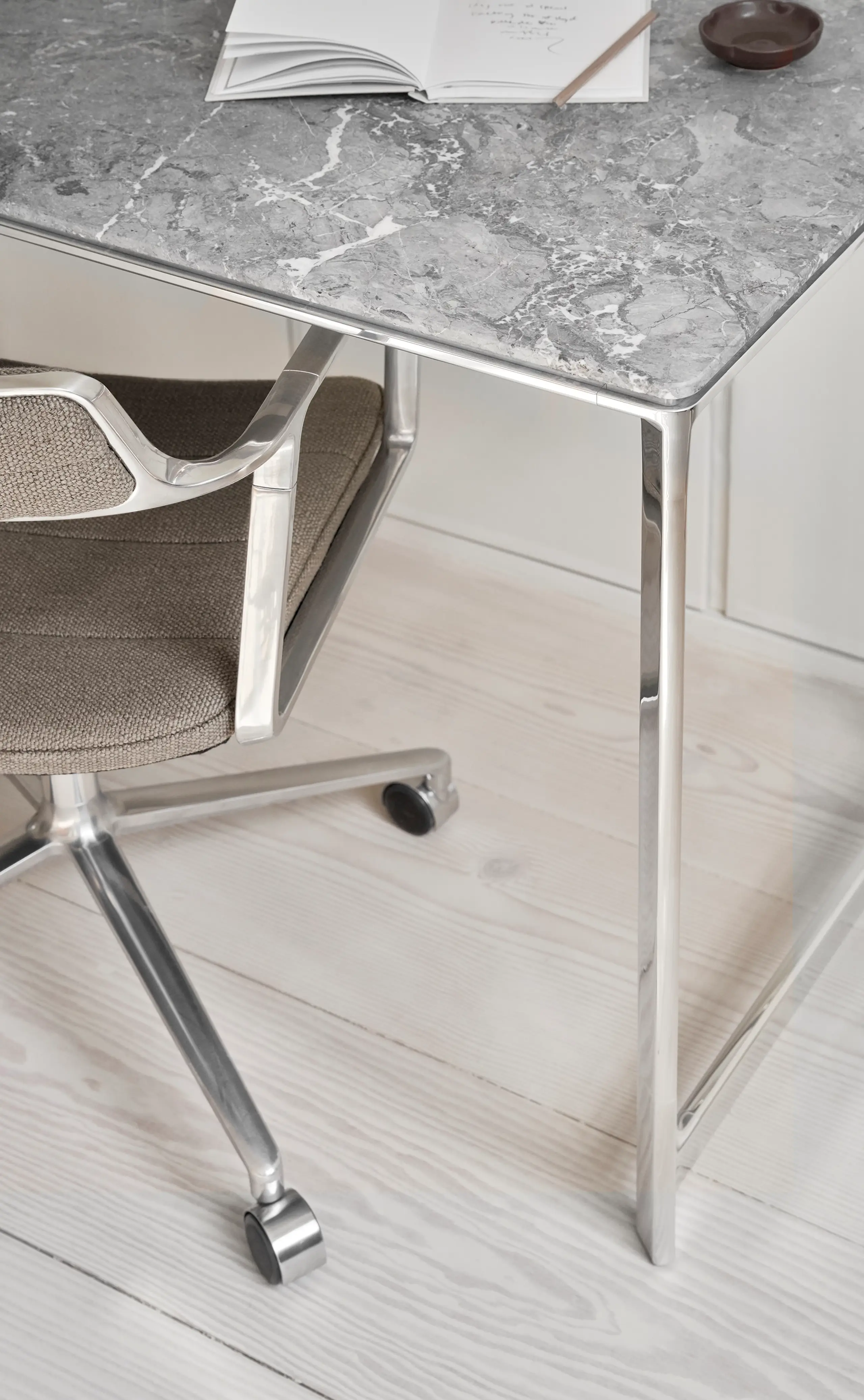 Trods sin kompakte form giver Studio Desk rigeligt plads til produktivitet og komfort, hvilket gør den ideel til mindre rum, hvor pladsen er begrænset. Den fungerer glimrende som et stilfuldt arbejdsområde i både stue, soveværelse eller et moderne studie. For et harmonisk og professionelt udtryk kan den kombineres med Vipps matchende kontorstol og belysning. Med sin matte overflade og klare, enkle linjer falder skrivebordet naturligt ind i såvel minimalistisk som klassisk indretning.
